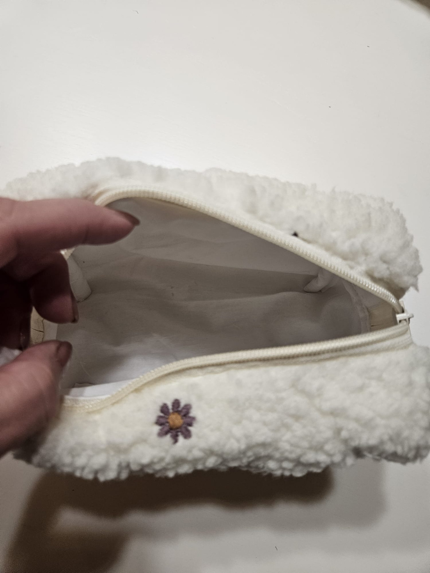 Kosmetická taštička chlupatá bílá 24 cm
