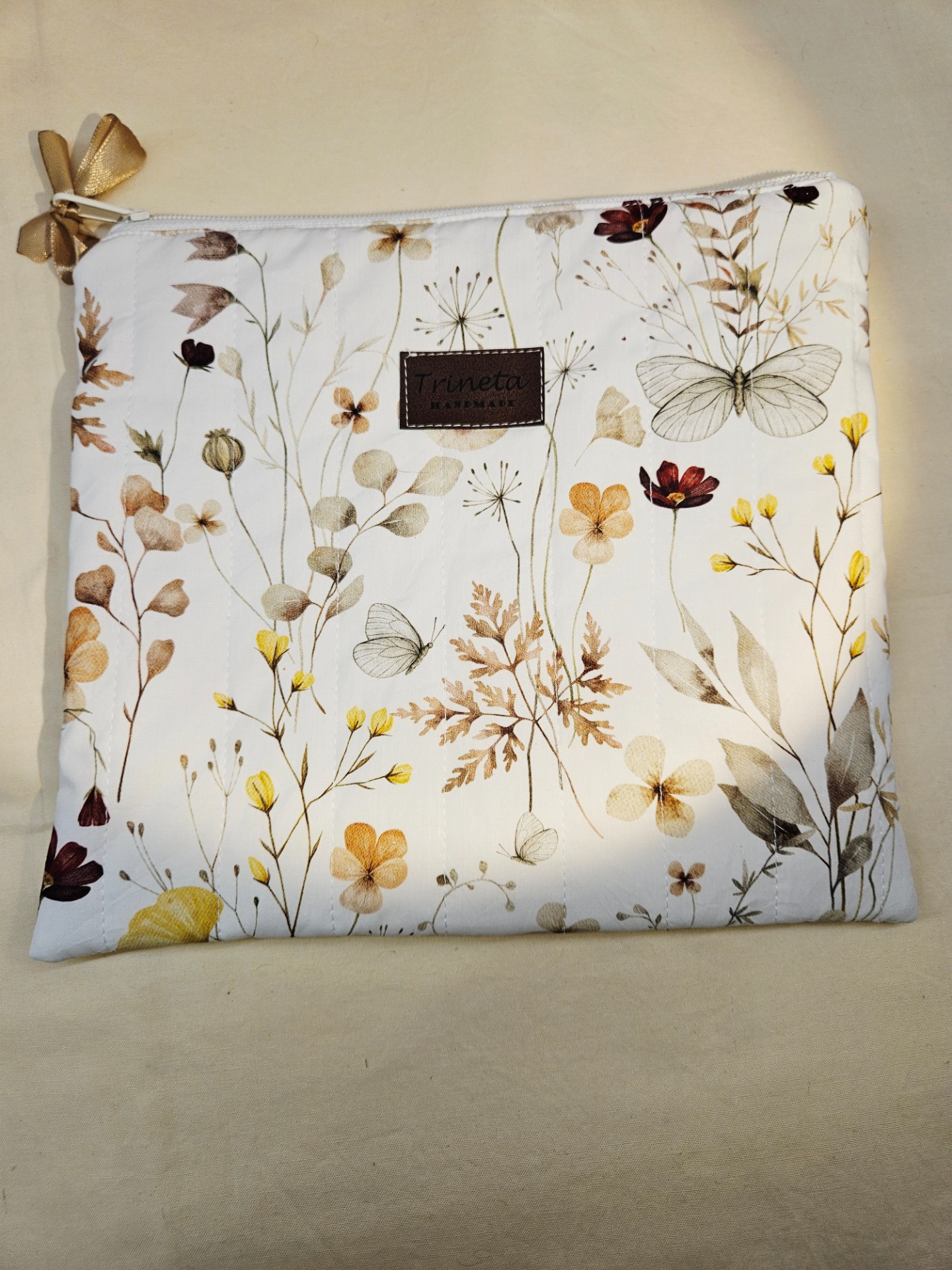 Kosmetická taštička s rovným dnem, ze zahraniční látky, prošita s vatelínem a podšívkou. Zapínání na zip zdobený mašličkou Velikost 30x30 cm - dostatečně velká na vše,co je potřeba.