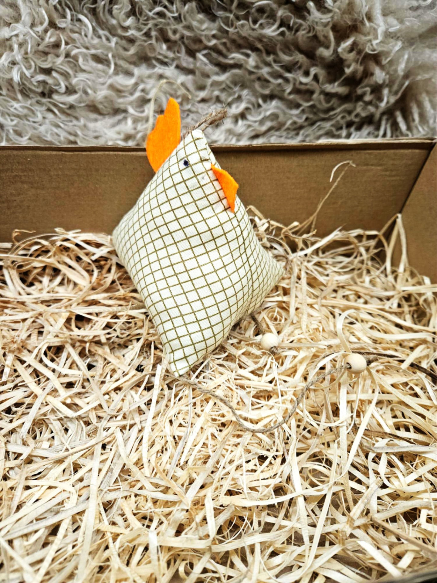 Slepička o velikosti cca 15 cm, vhodná k výzdobě na velikonoce, výplň duté vlákno