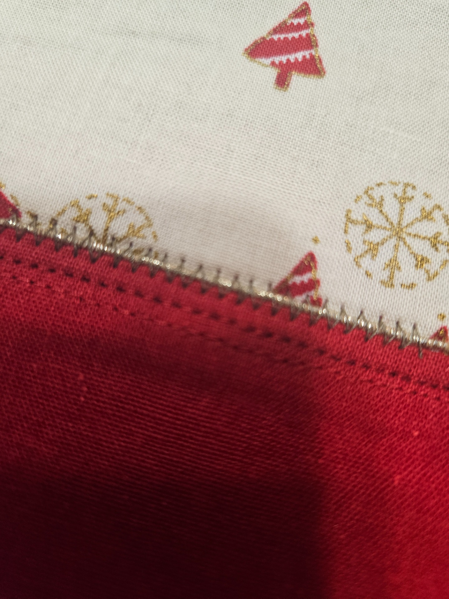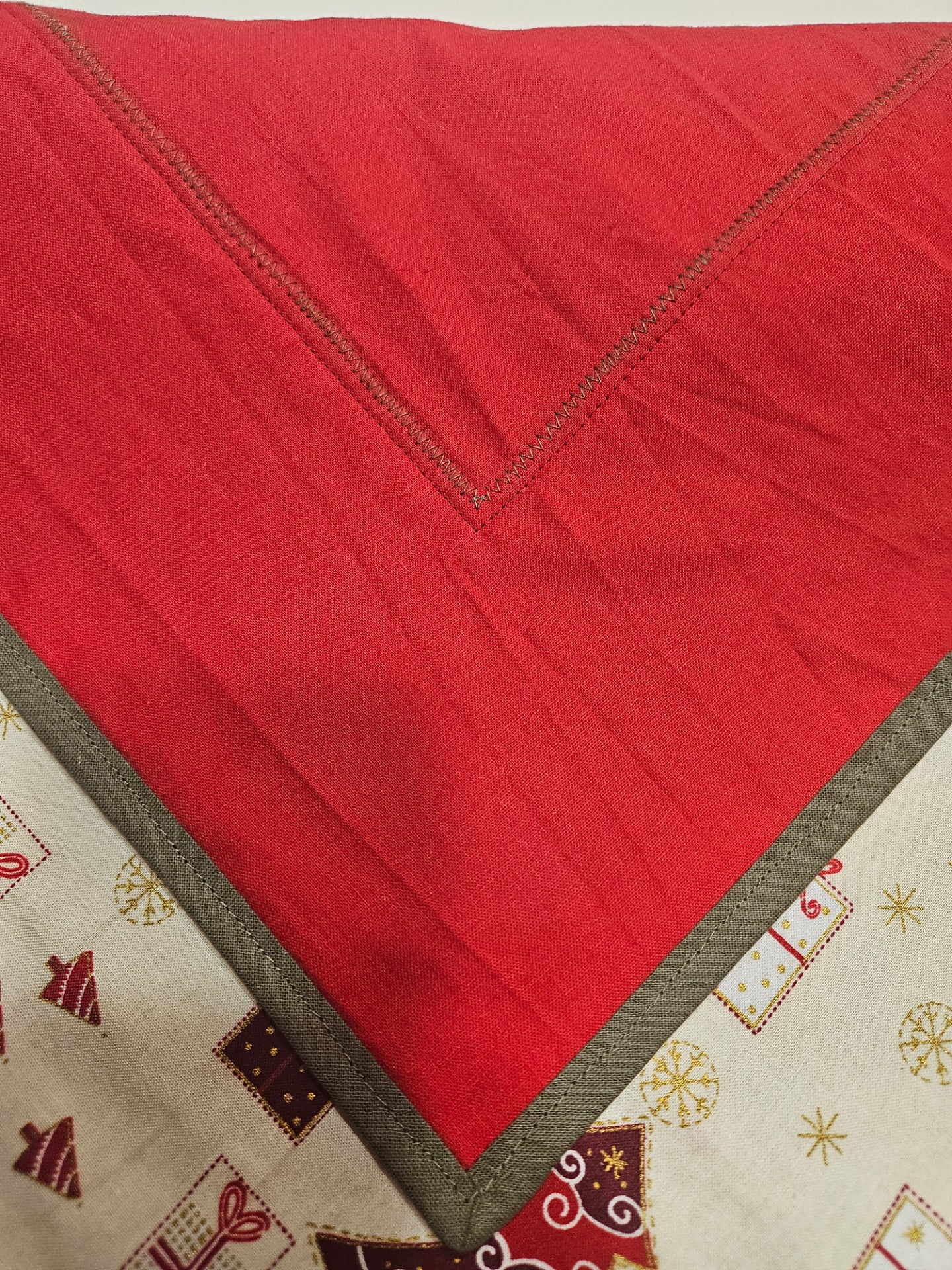Vánoční Štola na stůl Použita vánoční látka v kombinaci se zlatým zdobením Velikost 68x68 cmPoužita bavlna a vatelín, spodni strana červená